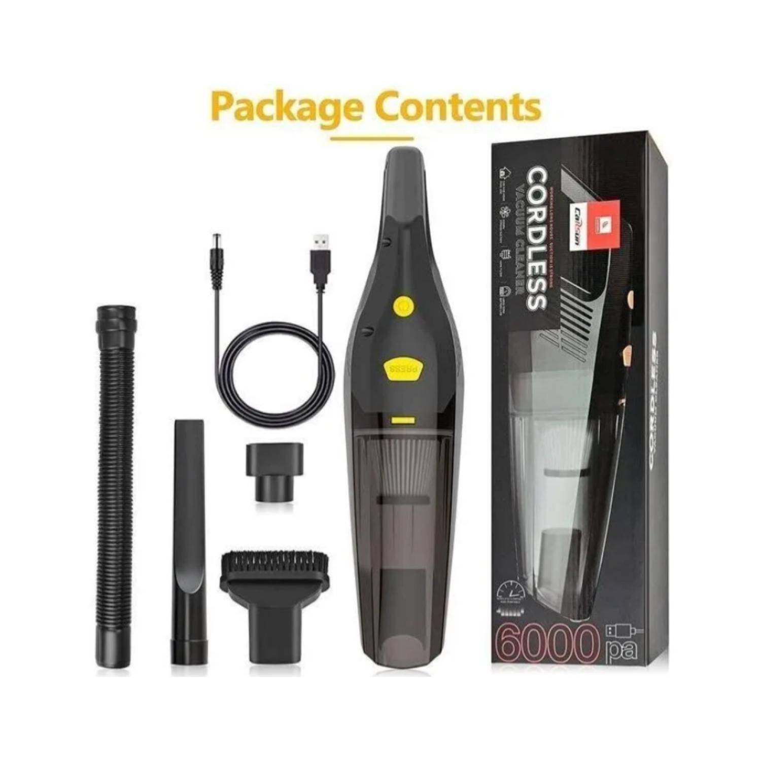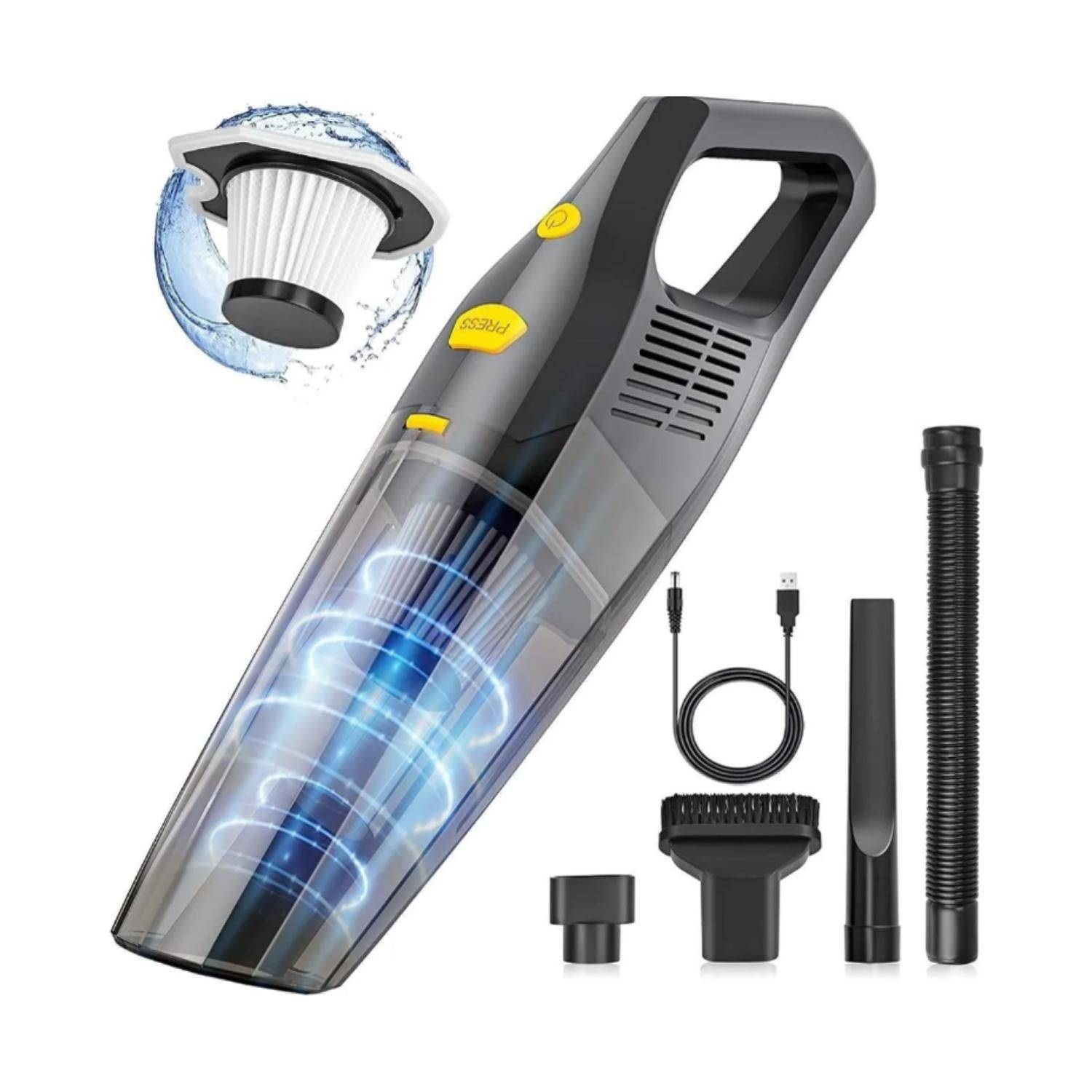 Aspiradora Portatil 6000 Portátil Pelo Mascota Hogar AutoTe ayudará a limpiar fácilmente el polvo, pelo de mascotas, arena, residuos de alimentos, líquidos, residuos ocultos en el cojín o sofá.Cable de alimentación para su carga.Fácil de usar: la aspiradora es ligera y extremadamente cómoda entre otras aspiradoras de mano. Tus manos estarán menos cansadas y puedes guardarlas en casi cualquier lugar de tu coche, limpiará tu coche tan rápida y fácilmente como un profesional.* Marca: CARSUN* Codigo universal de producto: 7867866029452* Incluye filtros reutilizables: Sí* Es industrial: No* Es apto para liquido: Si* Inalámbrico: Sí* Condición del artículo: Nuevo* Linea: ASPIRADOR POLVO* Modelo: 6000PA* Nivel de presión sonora: 0 dBA* Funciones adicionales: AUTO,INALÁMBRICA,PORTÁTIL,USB* Tipos de aspiradora: AUTO,INALAMBRICA,PORTATIL,USB* Voltaje: 7.4* Capacidad de volumen: 2 L* pesos: 1 kilo* Con filtro de salida: Si