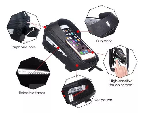 Adecuado para el tamaño del teléfono móvil: 9 cm * 16,5 cm (se recomienda para el uso del teléfono móvil por debajo de 6,5 pulgadas)El paquete incluye:1 * bolsa de bicicleta.