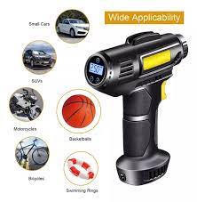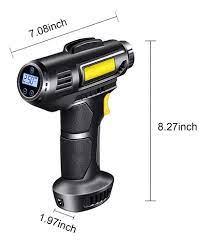 Compresor De Aire Digital Portátil Led Con Diseño Ergonómico DescripciónInflado rápido, Este inflador de neumáticos de compresor está equipado con motor de alta potencia, puede inflar los neumáticos de tu automóvil a una velocidad de 25 l/min, puede inflar los neumáticos de tu automóvil de 0 a 35 psi en 10 minutos. Tenga en cuenta que después de 10-15 minutos de uso continuo, deje que el compresor descanse y se enfríe al menos por un tiempo antes de continuar usándolo.• Diseño ergonómico, el diseño ergonómico hace que sea fácil y cómodo de usar, ya sea en el suelo o en la mano cuando se infla. Cuando el inflador está funcionando, el LED incorporado se ilumina, iluminando el lugar de trabajo oscuro.• Bomba de neumáticos de automóvil con cable, el tamaño del producto es de 8.26 x 7.08 x 1.96 pulgadas. La máquina es cómoda y fácil de operar. Viene con un cable de alimentación de 9.8 pies para inflar cualquier neumático de tu automóvil. La manguera de 1.64 pies es suficiente para el uso diario. Diseño de mango, fácil de sostener. Tamaño pequeño, fácil de llevar. Viene con linterna LED integrada para uso de emergencia.• Amplias aplicaciones, Incluye boquillas. Infla cualquier válvula en tu coche y bicicleta; el accesorio incluido infla rápidamente bolas, cojines, globos y colchones. NOTA: Esta bomba no está diseñada para aplicaciones de alta presión o alto volumen, como piscinas y canoas inflables.