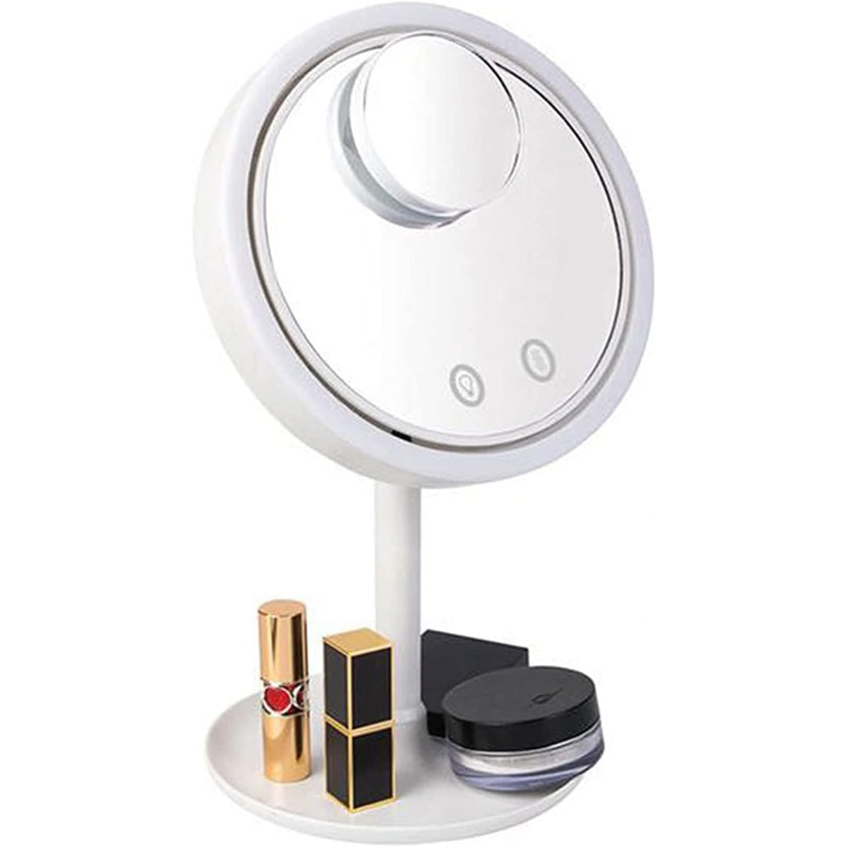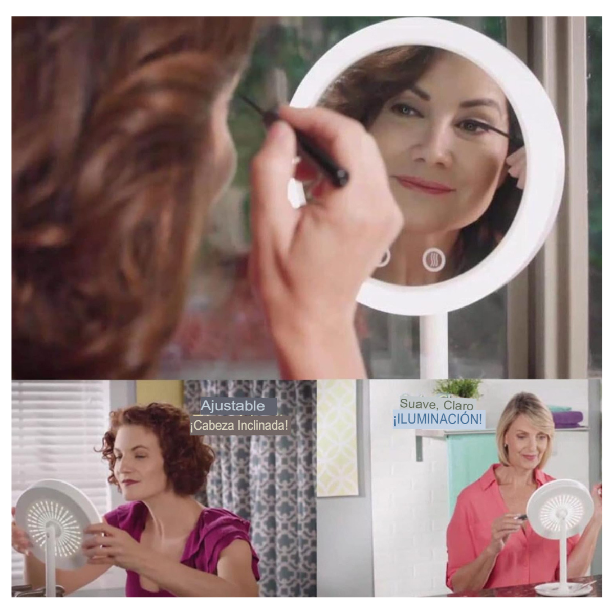 Complementa tu espacio con su diseño moderno y sofisticado, mientras disfrutas de sus características prácticas que elevan tu experiencia de maquillaje. Eleva tu rutina de belleza a un nuevo nivel con el Espejo 360° de Maquillaje LED y Ventilador: el aliado perfecto para una belleza impecable.Rotación 360°: Gira el espejo en cualquier dirección para obtener el ángulo perfecto, asegurando que cada detalle de tu maquillaje esté impecable desde cualquier posición.Uso versátil: Úsalo en tu tocador, baño, mesa de maquillaje o cualquier espacio personal, adaptándose perfectamente a tus necesidades de belleza.Sistema de ventilación integrado: Disfruta de una sensación de frescura mientras te maquillas gracias al sistema de ventilación que evita que el espejo se empañe y te permite concentrarte en tu belleza sin interrupciones. Iluminación ajustable: Personaliza la intensidad de la luz con el regulador táctil para crear el ambiente ideal para tu maquillaje, ya sea en un entorno con poca luz o a plena luz del día.Interruptor de atenuación táctil: Controla la iluminación con un simple toque, ajustando el brillo de forma precisa para realzar tus rasgos y lograr un maquillaje impecable.