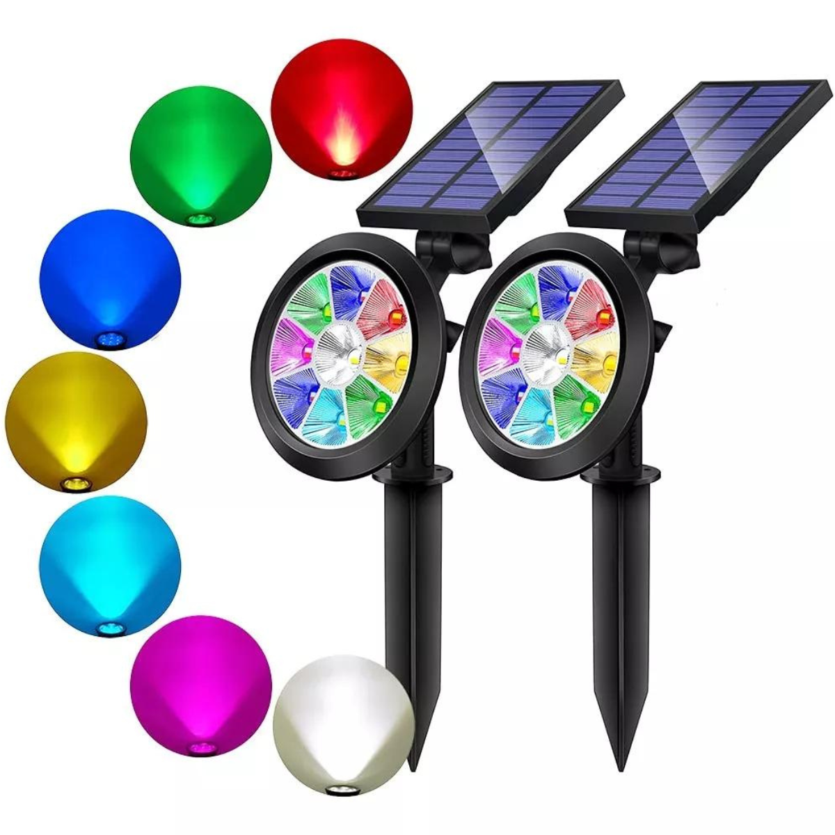 Focos Solares LED Impermeable RGB, convierte tus exteriores en un escenario lleno de color y alegría con estos brillantes compañeros. Experimenta la magia de la Navidad de manera eficiente, elegante, aprovechando al máximo la energía solar.- Vibrantes Tonos: Sumérgete en la atmósfera festiva con una variedad de colores RGB que iluminan tu espacio con vivacidad y diversión.- Eficiencia Solar: Carga durante el día para disfrutar de un resplandor nocturno. Una opción amigable con el medio ambiente que te permite ahorrar energía y dinero.- Resistencia Comprobada: Diseñados para resistir cualquier condición climática, desde lluvia hasta nieve. Estos focos solares siguen brillando sin importar qué.- Variedad de Modos: Desde parpadeo hasta luz constante, elige el modo que mejor se adapte a tu estado de ánimo y crea la atmósfera perfecta.- Instalación Sencilla: Olvídate de los cables enredados y las complicaciones. Instala tus focos solares en cuestión de minutos, disfruta de la magia navideña sin esfuerzo.