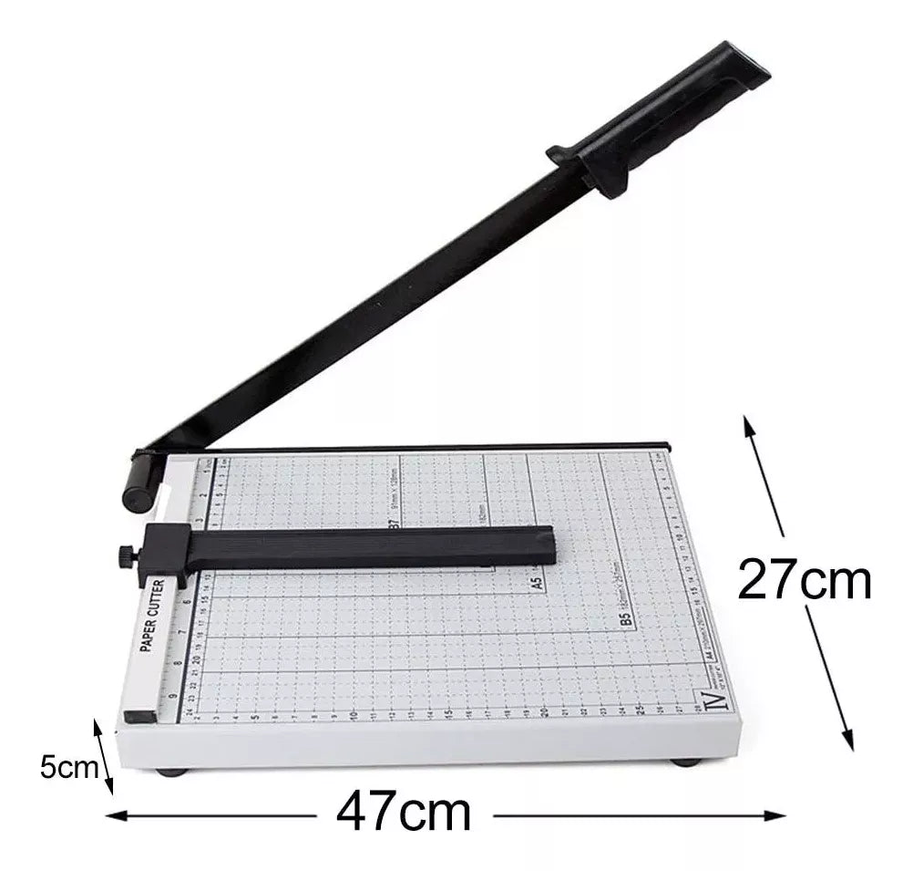 Este cortador de papel cuenta con un agarre fácil de manejar para un control óptimo con facilidad, lo que garantiza comodidad incluso después de un uso prolongado. ¡También se puede ajustar para satisfacer tus preferencias de corte! Fabricado con materiales de primera calidad para obtener resultados seguros y precisos, con cortes limpios posibles gracias a su sistema de cuchillas afiladas añadido y un marcador de tamaño de papel seguro que sirve como guía de tallas. CARACTERÍSTICAS: - Fácil De Ajustar- Tamaños De Tarjeta Postal Y Fotos (L) A4/B5/A5/B6/B7.- Debe Colocarlo En Una Superficie Firme.- Cortes precisos y rápidos.- La guía de papel ajustable le permite trabajar con precisión.- Ideal para las tiendas de impresión, escuelas y negocios.- Cómo utilizar: coloque la recortadora sobre una superficie firme y sólida antes de usarla.- Ajuste el papel a la posición deseada con el ajustador de papel magnético en la base de la recortadora.- Sostenga el papel en la base con la mano.- Presione la hoja hacia abajo firmemente hasta que se detenga. ESPECIFICACIONES: - Medidas: 27cm x 47cm x 5cm- Cuchilla Auto afilable- Guillotina metálica con regla impresa en su base para mayor precisión.- Cuchilla de Acero Auto afilable Con Regleta de apoyo para corte Resorte- Hoja curva para el contacto constante con la superficie de corte.- Placa base metálica con múltiples patrones / rejilla mediciones.- Corta hasta 12 hojas CONTENIDO DEL PAQUETE: - 1 Cortador de papel Guillotina Metálica