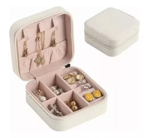 Pequeño joyero de cuero sintético, organizador de viajes, exhibición de anillos, aretes, collares, diseño de moda, 100% nuevo, de alta calidad. Pequeño en tamaño, ligero en peso, moderno en diseño y bien hecho en calidad. Incluye: 6 rollos de anillos, 3 ganchos para collares y 4 divisores. (El separador se puede quitar para poder instalar la barra de labios).