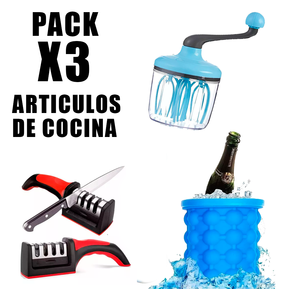 ¡Prepárate para simplificar tu vida en la cocina con nuestro pack de 3 productos esenciales! Permíteme presentarte estas increíbles herramientas que harán que tus tareas culinarias sean más fáciles y eficientes que nunca: Afilador Manual de Cuchillos: Mantén tus cuchillos afilados y listos para cualquier tarea con nuestro afilador manual. Con su diseño ergonómico y fácil de usar, podrás afilar tus cuchillos en segundos, asegurando cortes precisos y seguros en cada preparación culinaria. Hielera Cubeta de Silicona: Olvídate de las hieleras voluminosas y difíciles de almacenar. Nuestra hielera cubeta de silicona es la solución perfecta para mantener tus bebidas frías en cualquier ocasión. Su diseño compacto la hace ideal para picnics, barbacoas o simplemente para tenerla en casa. Además, su material de silicona duradero garantiza una fácil limpieza y un uso duradero. Batidora de Huevos Manual: Dale un impulso a tus habilidades culinarias con nuestra batidora de huevos manual. Perfecta para mezclar ingredientes, batir huevos o preparar salsas, esta batidora manual es un imprescindible en cualquier cocina. Su diseño compacto y liviano la hace fácil de usar y almacenar, mientras que su mango ergonómico proporciona un agarre cómodo y seguro. Ya sea que estés cocinando en casa o disfrutando de actividades al aire libre, nuestro pack de 3 productos esenciales tiene todo lo que necesitas para hacer de tus experiencias culinarias una verdadera delicia. ¡Hazte con el tuyo hoy mismo y descubre la conveniencia y versatilidad que estos productos pueden ofrecerte!