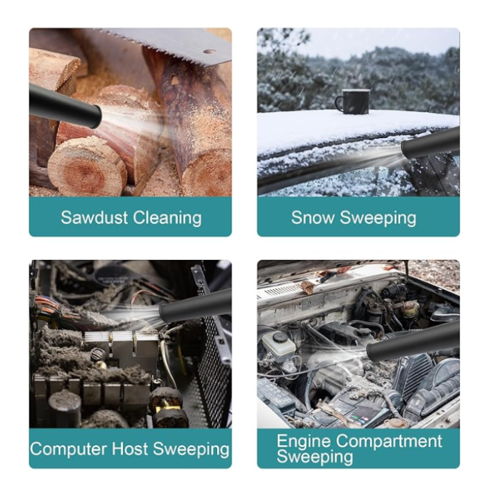SOPLADOR INALÁMBRICO 24V + 2 BATERIA Y CARGADORSoplador ideal para soplar el polvo de los computadores, monitores, equipos de audio, equipos eléctricos en general o cualquier otra cosa que este con polvo.Referencia de potencia:Mucho mas fuerte que un soplador manual de asados.Mucho mas fuerte que un secador de pelo.Mucho más efectivo que el aire comprimidoSi se limpia un computador, el equipo queda como si recien se hubiera armado.Si el aire se enfoca a un brazo, la piel se unde en la zona donde llega el aire !!! Excelente Potencia!!!Especificaciones:Velocidad: 16300R/minVoltaje nominal: 220VFrecuencia: 50-60hzPeso Aprox: 1.5kgMaterial: Plastico ABSVelocidad de soplado:1.6- 3.2 M/minOrigen: ChinaIncluye dos bateriaUSOS– Limpieza de Computadores– Limpieza de Fuentes de Poder– Limpieza de Equipos Electronicos– Limpieza de Accesorios Electricos– Limpieza de Tableros Electricos– Parlantes, Radios, TV´S– Rincones y Muebles de Casa– Automovil (Motor), Garaje, Despensa– Casa, Oficina, Departamento– Multiples Usos domesticos– En si, cualquier cosa o lugar que tenga polvo.