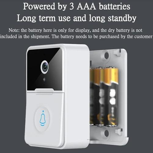 Mensaje bidireccional de voz y audio: el timbre de video está equipado con un sensor IRE pasivo, que detecta el más mínimo movimiento en la entrada.Cuando el visitante presiona el timbre o los visitantes están en la puerta de su casa. La notificación se enviará a su teléfono móvil, el timbre de video le proporciona un audio bidireccional claro en tiempo real, puede ver, escuchar y hablar con los visitantes de inmediato a través de la aplicación del teléfono.Puede responder e ingresar a la interfaz de videollamada, compatible con dispositivos iOS y Android.Mayor tiempo de espera: alimentado por tres pilas secas AAA (batería no incluida), combinadas con un diseño de bajo consumo, la capacidad de resistencia mejora considerablemente, lo que significa adiós al reemplazo frecuente de la batería (Nota: batería no incluida).Compatible con Wi-Fi de 2,4 GHz: el alcance Wi-Fi de 2,4 GHz del videoportero es de hasta 20 m/20 m, se conecta fácilmente a la red Wi-Fi de su hogar y envía transmisión de video en vivo a su teléfono.Puede ver y hablar con el visitante desde la comodidad de su cama, desde el trabajo o mientras está de vacaciones. Supervisa y comparte hasta 4 dispositivos. Hasta 4 usuarios pueden ver la transmisión de video, pero solo 1 usuario puede usar el intercomunicador directo.Full HD y visión nocturna: la cámara de video con timbre le brinda imágenes y grabaciones de video nítidas.Las luces IR incorporadas te permiten ver con claridad incluso en la oscuridad. El IR-CUT inteligente detecta automáticamente la luz ambiental y cambia al modo de visión nocturna. También puedes ver las esquinas fuera de la vista con un gran ángulo de 60. ¡Proteja mejor a su familia y su propiedad!Fácil de instalar y usar: esta cámara con timbre inalámbrico tarda menos de 5 minutos en configurarse sin tener que usar herramientas complicadas. El timbre se puede controlar mediante APP, modelo de trabajo automático, inteligente y portátil. Portátil en tamaño y peso.El paquete incluye:cámara de timbre* 1máquina Ding-dong para interiores* 1cable de datos*1 pegamento 3M* 1bolsa de tornillo* 1manual* 1